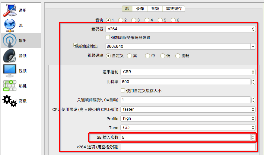 注:如果要在云端添加SEI功能,务必在推流地址中加上参数wm=1。如果在OBS中直接对视频插入SEI,此参数可以去除。