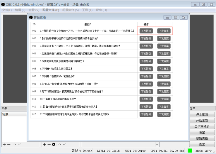 1、下载 (参见 SDK下载)OBS直播答题定制程序,直接打开运行。